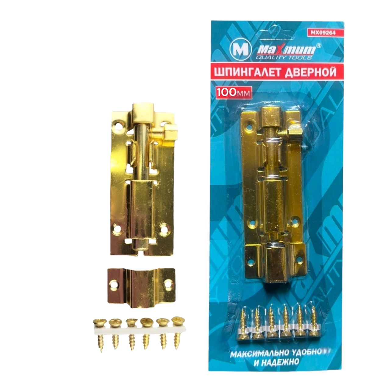 Мебельный шпингалет выполнен из стали с золотистым антикоррозийным покрытием и отлично подойдет для фиксации створок дверей в закрытом положении. Специальная ручка надежно препятствует случайному открытию: ход ригеля 40 мм. Шурупы 6 шт. поставляются в комплекте.