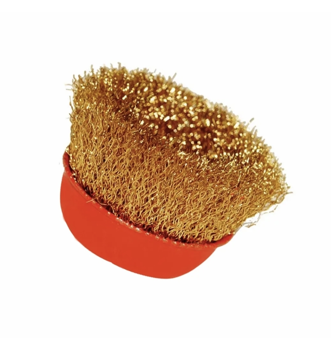 Щетка латунированная 125 мм для УШМ предназначена для зачистки изделий, удаления ржавчины и грязи с металлических поверхностей. Оснастка крепится к инструменту при помощи гайки М14.